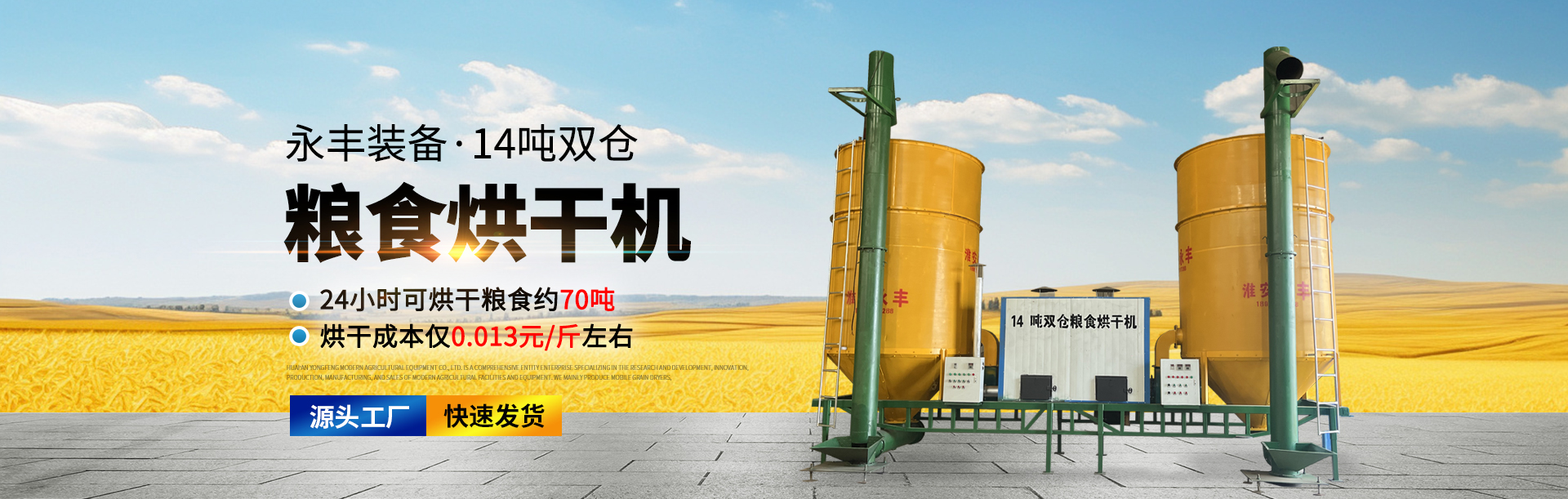 淮安市永豐現(xiàn)代農(nóng)業(yè)裝備有限公司是專(zhuān)業(yè)從事現(xiàn)代農(nóng)業(yè)設(shè)施裝備的研發(fā)創(chuàng)新、生產(chǎn)制造、經(jīng)營(yíng)銷(xiāo)售為一體的綜合性實(shí)體企業(yè)。主要生產(chǎn)“移動(dòng)式糧食烘干機(jī),農(nóng)副產(chǎn)品烘干機(jī),土豆全粉生產(chǎn)加工設(shè)備,農(nóng)業(yè)大棚二氧化碳?xì)夥适┓旁O(shè)備”等推廣應(yīng)用。